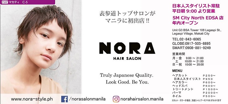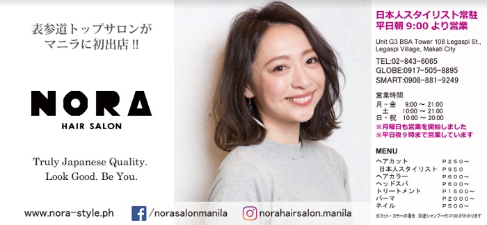 【マカティ】日本人スタイリストが毎日常駐しているサロンのNORA HAIR SALON 。薬剤はすべて日本製を使用しています。