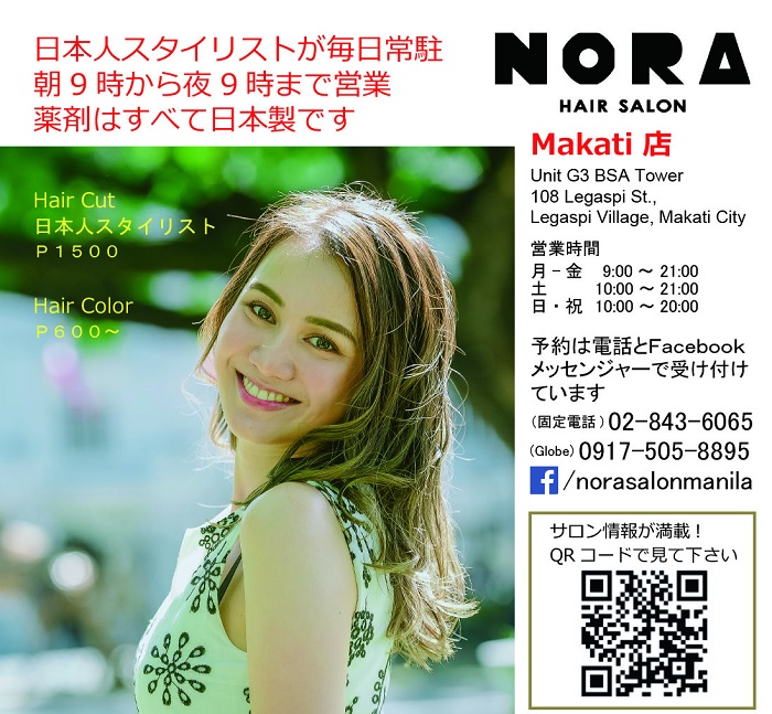 【マカティ】日本人スタイリストが毎日常駐しているサロンのNORA HAIR SALON 。薬剤はすべて日本製を使用しています。