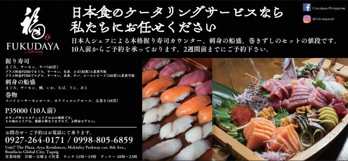 【BGC】新鮮な和食を提供する福田屋。東京で提供している料理と全く変わらない料理をフィリピンで。ハッピーアワーやおまかせコースも大注目!