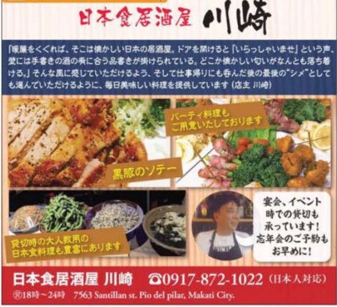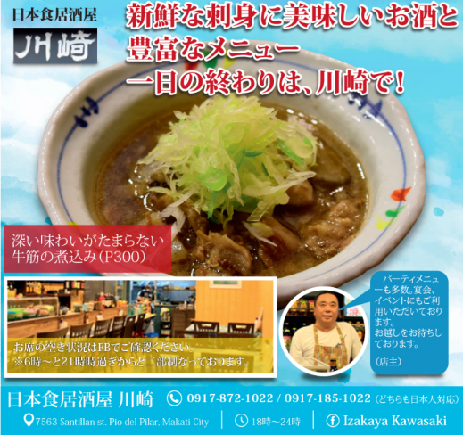 アットホームな店内で、新鮮な刺身や美味しいお酒が楽しめます。仕事帰りや飲んだ後のシメとして、マカティに住む日本人に人気のお店です!