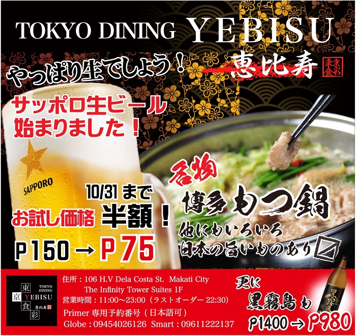 【マカティ・サルセド】やっぱり生でしょう!サッポロ生ビール始めました!