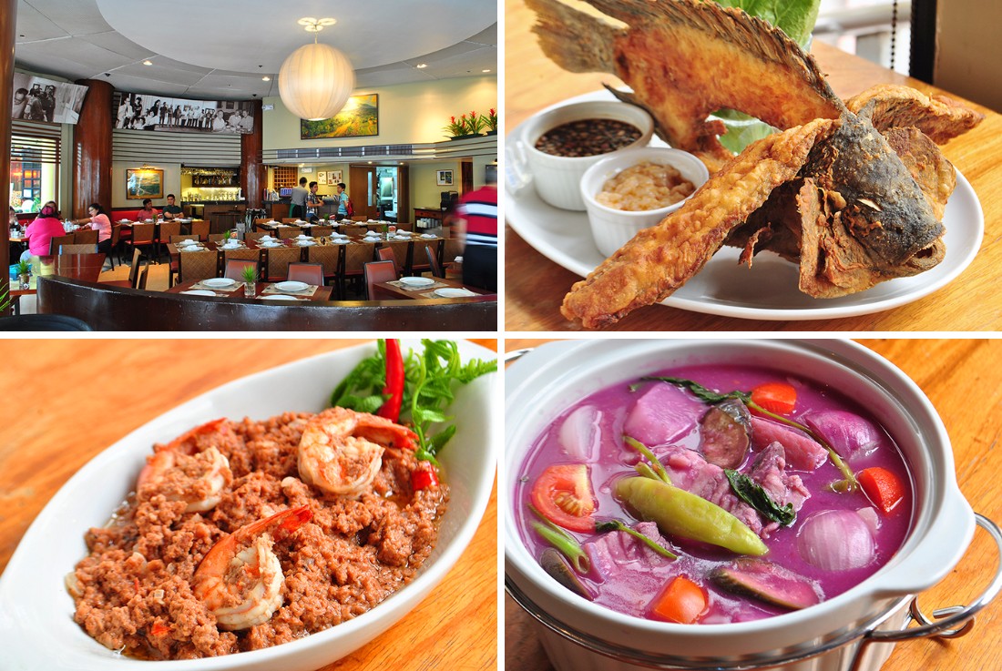 食の都と言われるパンパンガ州の料理が主なメニュー。魚を開いて姿フライにしたBinukadkadna Pla Plaは見た目も楽しめ、一番人気。紫色の山芋、ウベを混ぜたSinigang Sa Ubeはシニガンスープ特有の酸味を抑え、ポタージュスープのようなクリーミーな味わいかつ、少しザラッとした舌触りに。日本人観光客も多く訪れ、エビ、キノコ、筍を竹の中でお米と一緒に蒸したBamboo Riceも人気。日本語メニューもあるので、フィリピン初心者にも安心して薦められるレストラン。