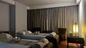 マカティのNew World Makati Hotel3階にある Paradasia Royale Spa では、指圧で筋肉のこわばりに対応する「Shiatsu」、長いストロークで巡りを整える「Swedish」、両方を組み合わせた「Signature Massage(60分P3,000/90分 P4,200)」を中心に、目的に合わせて選べるメニューを揃える。