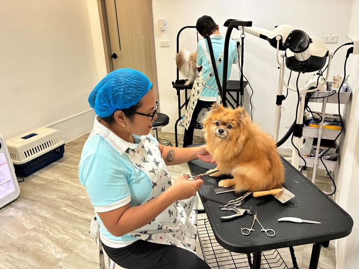 併設のグルーミングサロンでは、爪切り・足裏バリカン・耳掃除・肛門腺絞りを含む基本ケアを中心に、豊富なオプションも用意。トリミングは美容だけでなく、皮膚や体調の変化を早期に察知する健康チェックの役割も担う。経験豊富なプロのトリマーが、愛犬の体質や性格に合わせて丁寧にサポートしてくれるのも心強い。