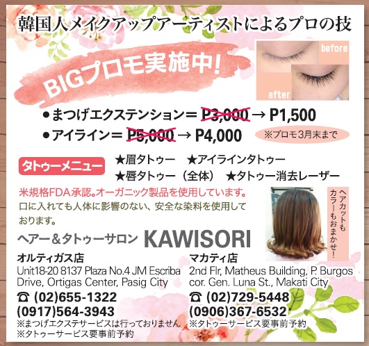 【マカティ】フィリピンのセレブも通う日系サロン。ヘアカット・デジタル・縮毛矯正・ヘアカラー・ヘッドspa・まつ毛エクステ・Gelネイル・脱毛・全身マッサージ・着物着付け。