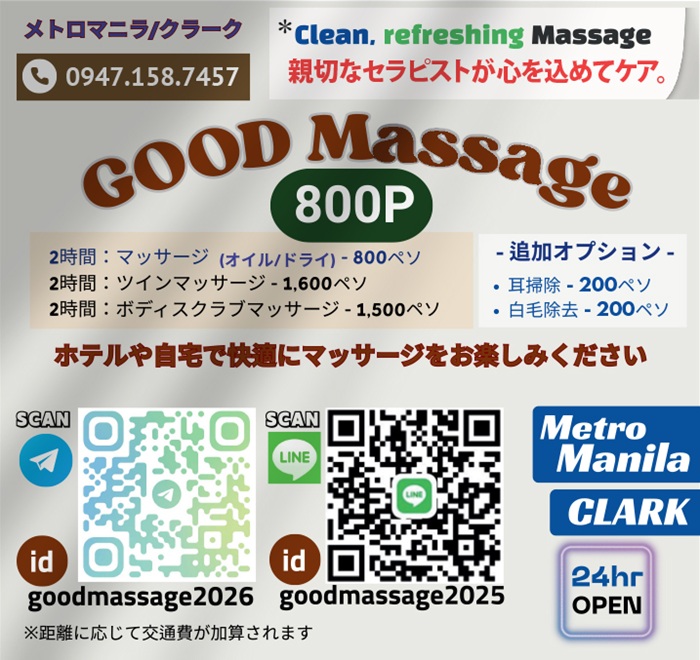 Clean, refreshing Massage 親切なセラピストが心を込めてケア