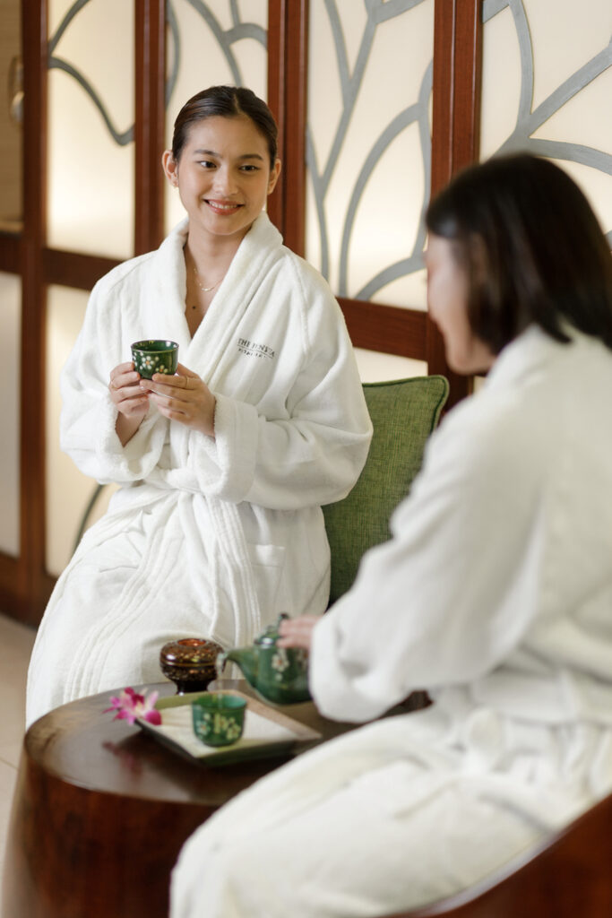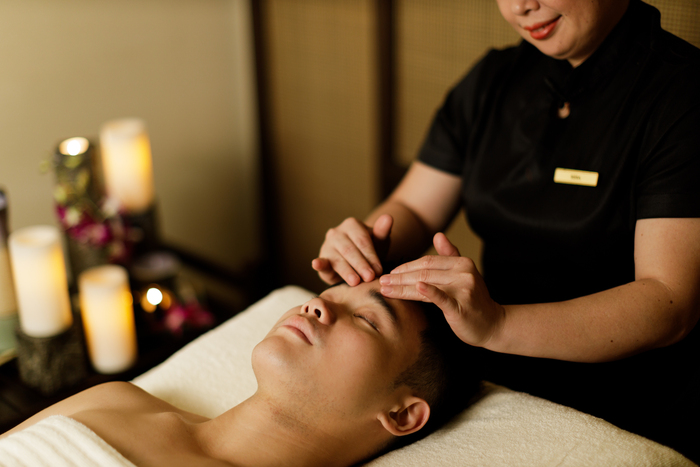 ホテル1階に位置するThe Peninsula Spaは、プールを望む落ち着いた空間で、フィリピンの伝統を生かしたケアを受けられるスパ。