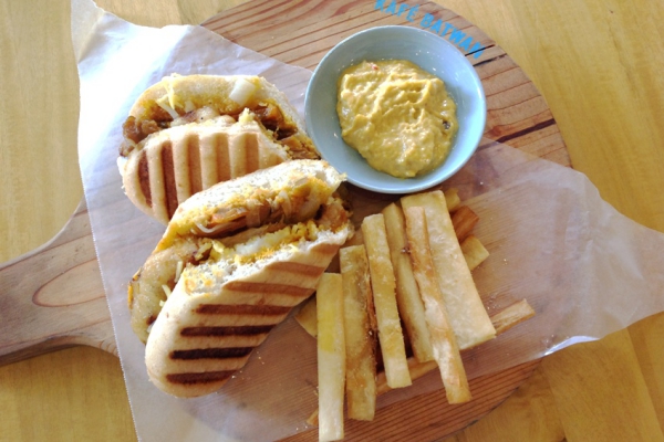 サンドイッチに、キャッサバフライとアイオリソースを添えた