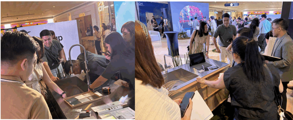 今回のフィリピン発の新ショールームは約120㎡のスペースに、ステンレス製キッチンや洗面台、バスまわりなど、約50点の製品を展示。直線的で無駄のないフォルム、日本独自の美意識を感じさせるミニマルデザインが、来場者の関心を集めました。