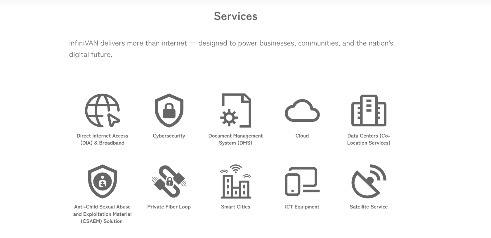 私たちインフィニバンは、日本では当たり前に提供されている高速・安定のインターネットサービスをフィリピンに持ち込み、自前の光ファイバー網を通じて、24時間365日体制で快適なサービスをお届けすることを心がけています。