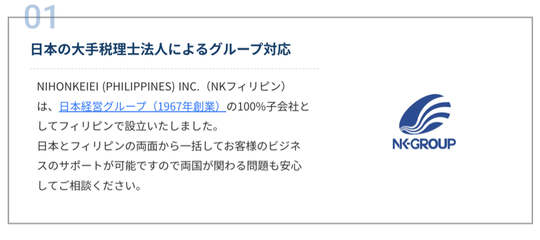 日本経営グループは、50年以上にわたり日本で税理士法人として会計税務顧問サービスを提供しています。フィリピンでも日本で培った実績と品質で会計税務サービスを日系企業に対して提供しています。