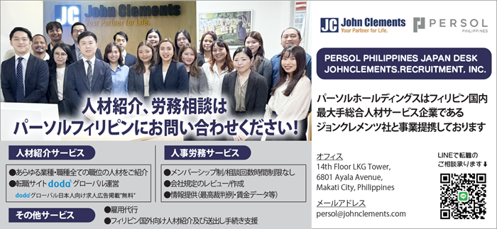 HOME > フィリピンのビジネス > PERSOL PHILIPPINES (JOHNCLEMENTS. RECRUITMENT, INC. – JAPAN DESK) / パーソルフィリピン