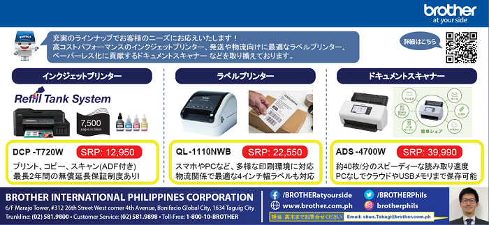 Facebook:/BROTHERatyourside Twitter:/BROTHERPhilis internet:www.brothercom.ph Instagram:/BROTHERPhilis 担当:高木までお問い合せ下さい! E-mail:[email protected]