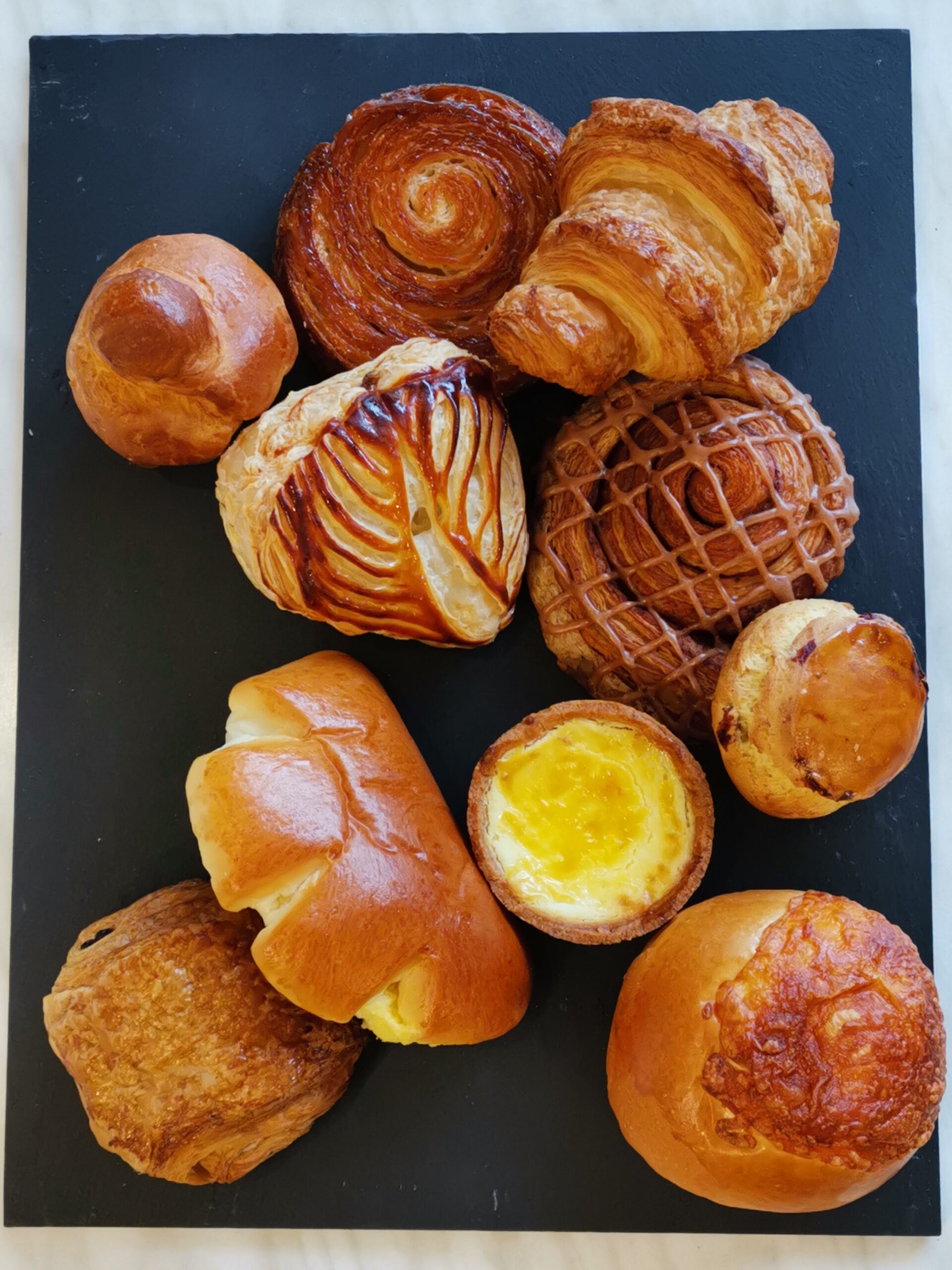 日本で製菓学校を卒業後、学校のコースでフランスへ渡り、約1年間滞在。前半の半年は学校で学び、後半の半年は住み込みで本場の技術を磨いた。帰国後は東京・世田谷のパティスリーで腕を磨き、2007年にフィリピンへ移住した。はっちんの一角でパンを焼き始めたのが、この店の原点だ。