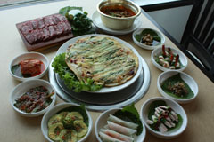 雨の日はチヂミとマッコリ、と言われるくらいの定番の組み合わせ。これは、雨の降る音がチヂミを焼く音に似ているからなど、いくつかの説がある。