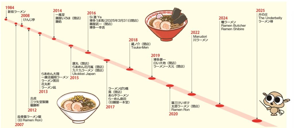 「フィリピンでラーメンが食べられるようになったのはいつ?」そんな疑問を持ったことはありませんか?日本の有名チェーンが進出し始めた時 期、フィリピン独自のアレンジラーメンが登場した瞬間、SNSで話題になったあの名店のオープン …… 。この年表を見れば、マニラのラーメ ン史が一目瞭然!ラーメン好きなら知っておきたい歴史をまとめました。