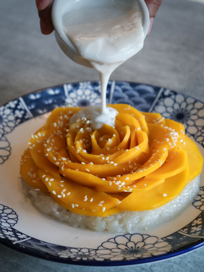 KHAO NIAO MA MUANGほんのり甘い餅と新鮮なマンゴーにココナッツミルクをかけて