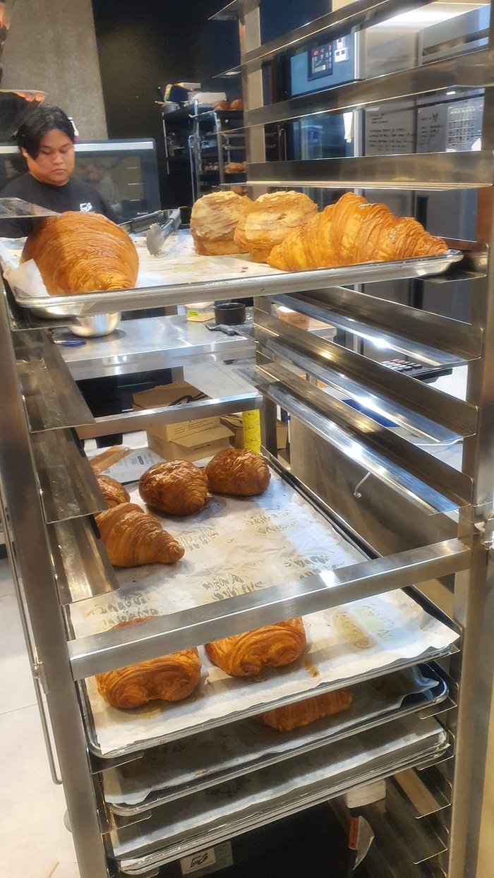 マカティの一角、ビルの1階にひっそりと構える「5G Coffee House」は、クロワッサン専門の工房。オーナーのRichard Guinto氏が2019年、自宅のガレージで始めた小さなペイストリー作りからスタートし、現在は「Croissants and Coffee Club Corporation」として他店舗への卸も手がける。店舗は工房メインで、2〜3席のイートインスペースがあるものの、基本はテイクアウト。看板の「Classic Croissant(₱140)」は、バターの香り控えめで軽く、何層にも重なる生地が特徴。アイシングがけの「Cinnamon Croissant Roll(₱220)」は、シナモンシュガーの香りがふわりと広がる一品。