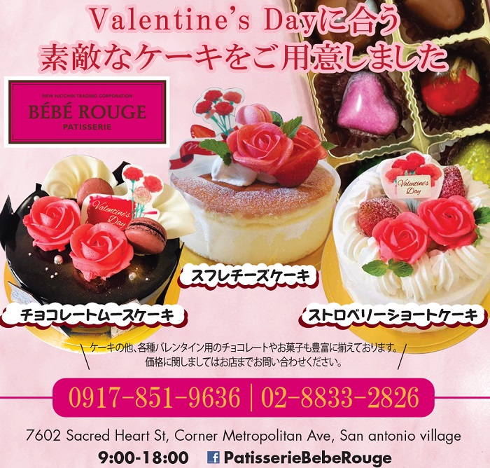 日本人が手がける洋菓子店Patisserie Bébé Rougeは、マカティの日本食材店New Hatchinのすぐ隣に店を構える。