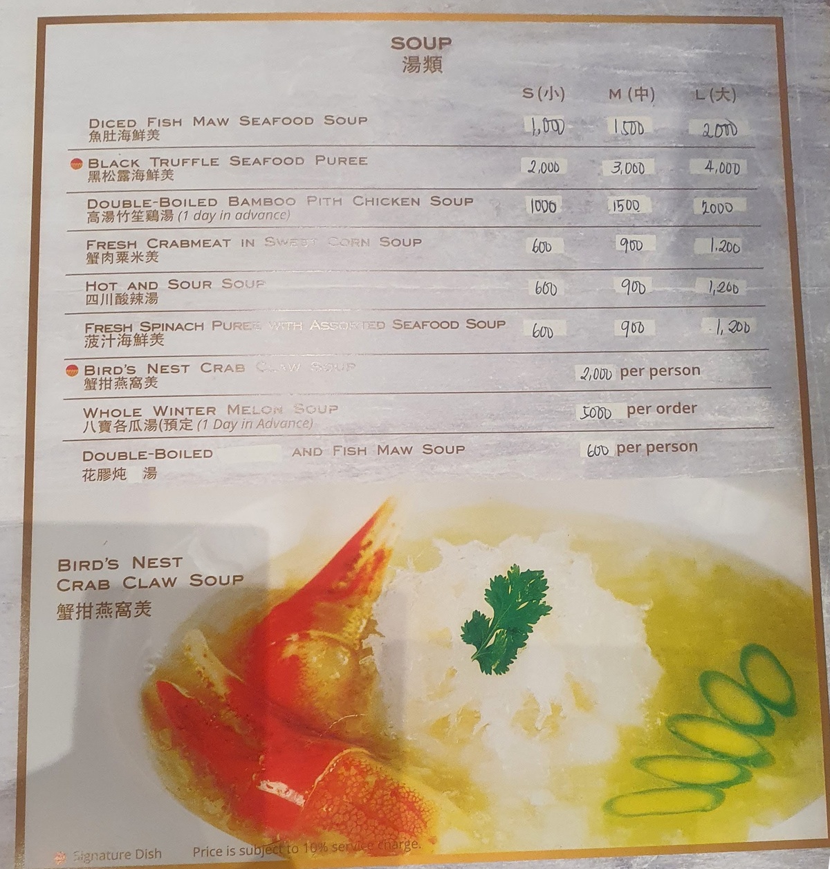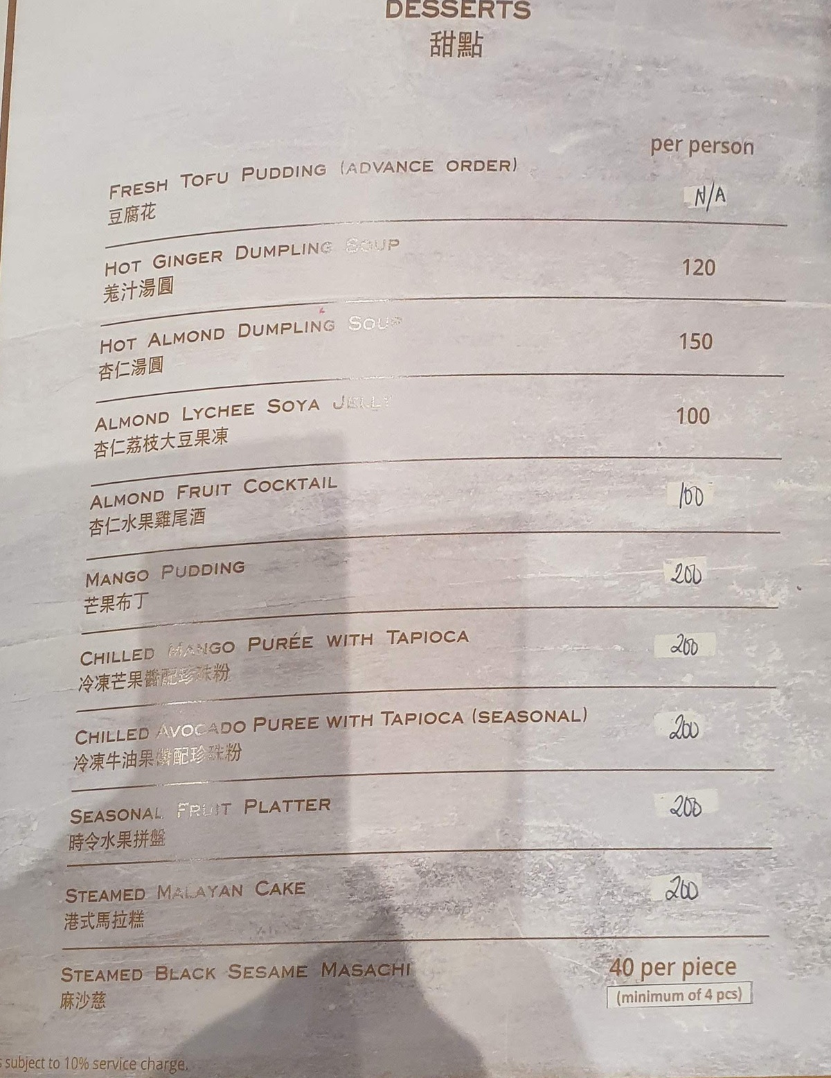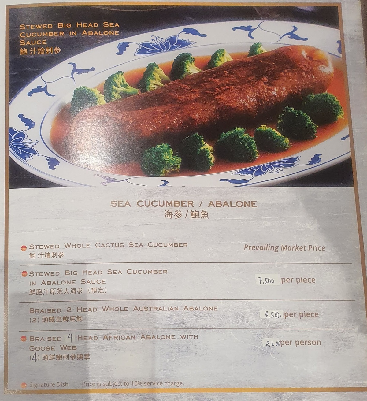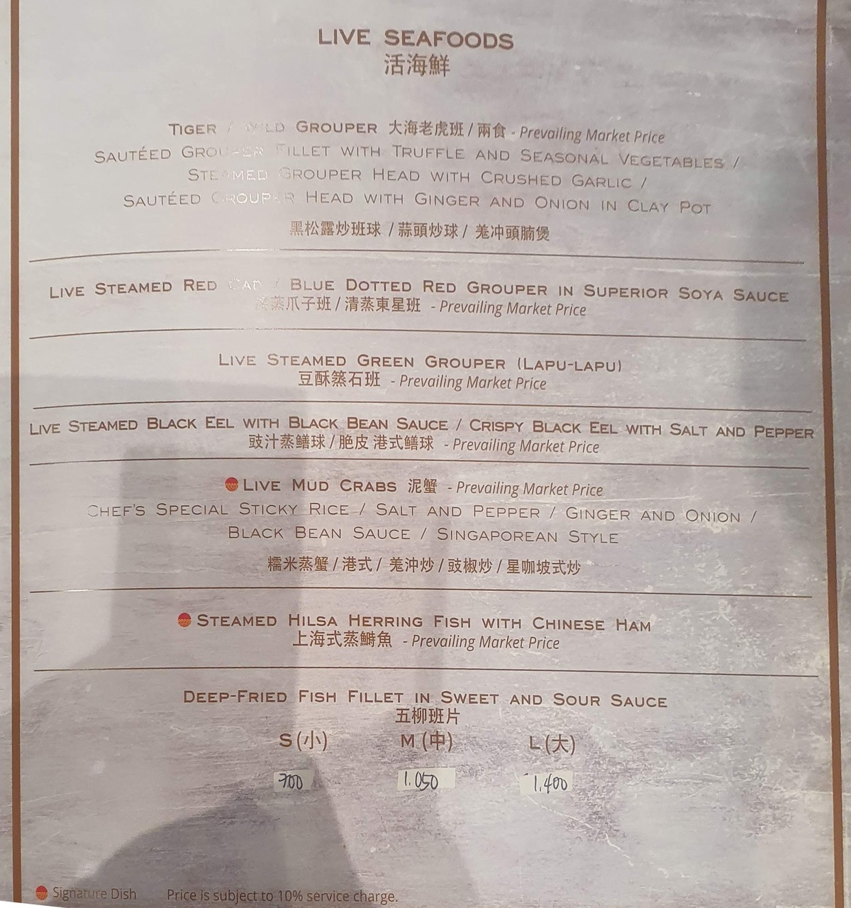 おすすめは、鮮度が命の「Steamed Har Gaw(P280)」、旨味の層が楽しめる「Steamed Hilsa Herring Fish with Chinese Ham(時価)」、贅沢な「Lobster Sashimi(時価)」、柔らかく煮込まれた「Braised 4 Head African Abalone with Goose Web(P2,400)」。Tatler Dining ベスト20にも選出された名店