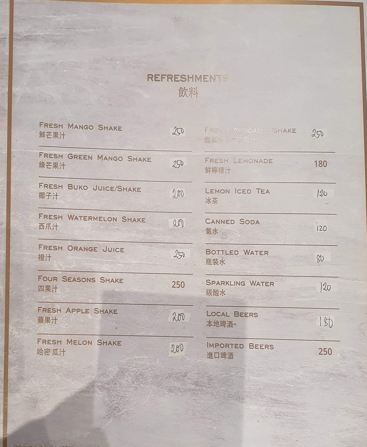 New Seaside Dampa Macapagal内に店舗を構える。レストラン向かい側のローカルマーケットで調理前の食材を購入してお店に持ち込み、調理法や味付けをしてすることが可能。主に中華とフィリピン料理を提供。円卓があり、団体利用にも最適。点心やスープ、炒飯などメニューも充実。ドリンクはカラマンシーやココナッツジュースなどがあり、価格は約60ペソと手頃。
