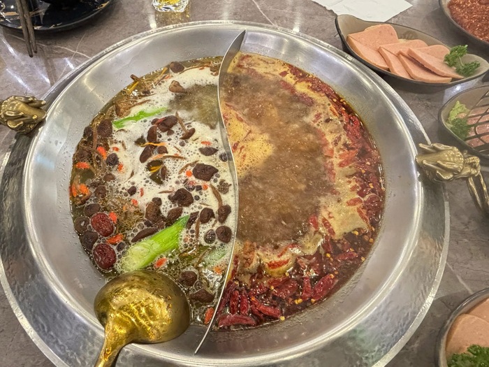 三槽の鍋で辛いスープや薬膳スープをいただく