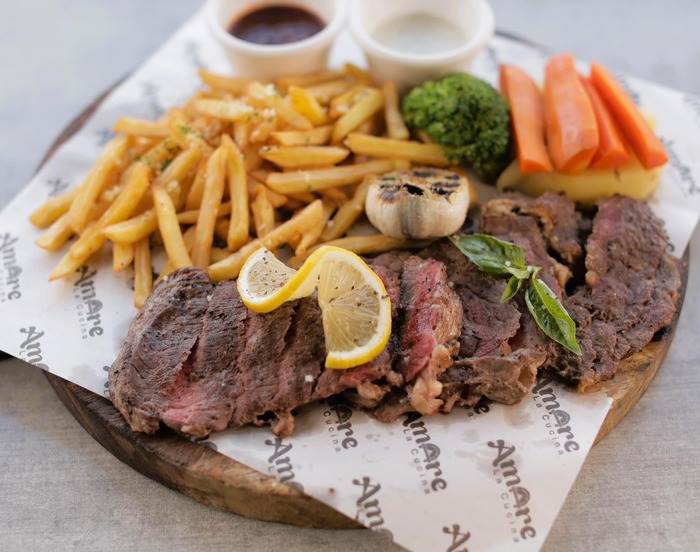イタリアンチェーン店。看板メニューは、香ばしく焼き上げた「USDA Rib Eye Steak(P1,630)」と、蟹味噌のコクが広がる「Creamy Aligue Pasta