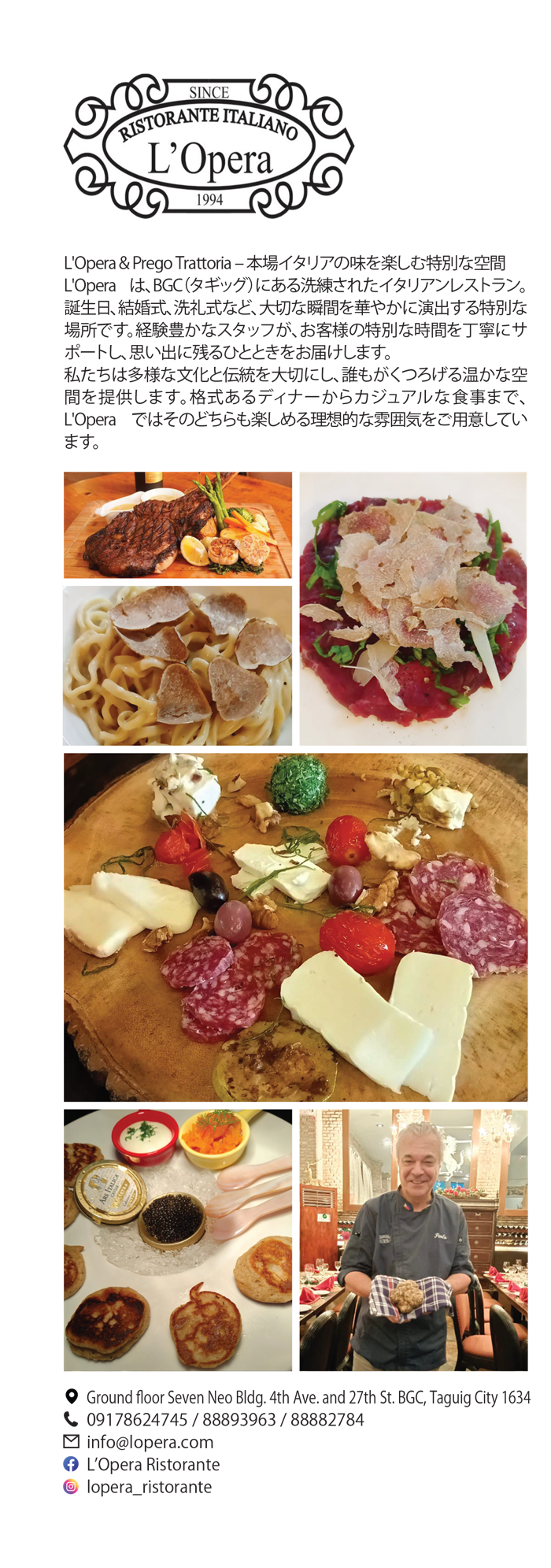舌の肥えた大人たちが特別な日に利用する瀟洒なリストランテ。マニラの街の喧騒をまったく感じさせない空間で、フィリピンで数少ないイタリア料理の真髄を届けるイタリアンリストランテ、L'Opera(ラオペラ)。