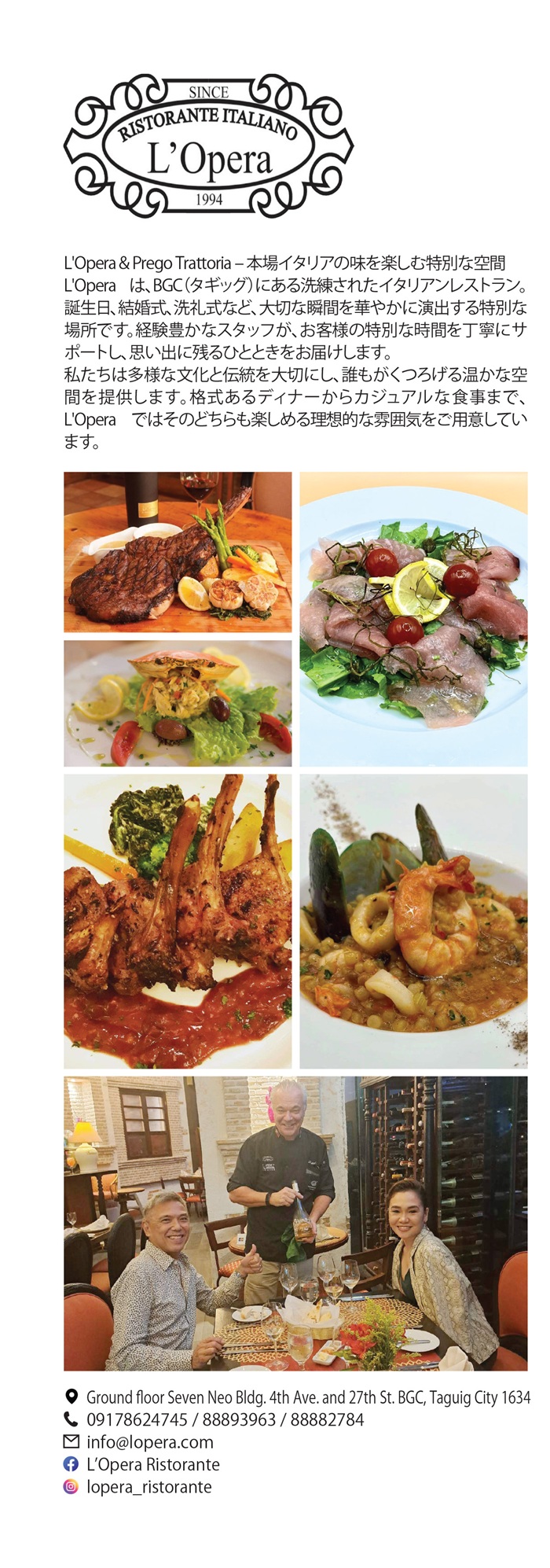 舌の肥えた大人たちが特別な日に利用する瀟洒なリストランテ。マニラの街の喧騒をまったく感じさせない空間で、フィリピンで数少ないイタリア料理の真髄を届けるイタリアンリストランテ、L'Opera(ラオペラ)。