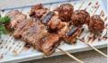 きりたんぽの串焼き(P150/1本)はピリ辛の柚子胡椒、さっぱりしたしょう油、濃厚な味噌の3種。