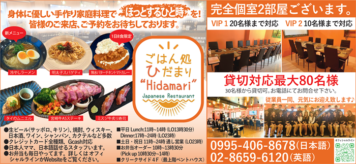 マカティのリトル東京近く、クリークサイド4階に店舗を構えるひだまりレストラン。身体に優しい手作り家庭料理で、ほっとするひと時をおすごしください。