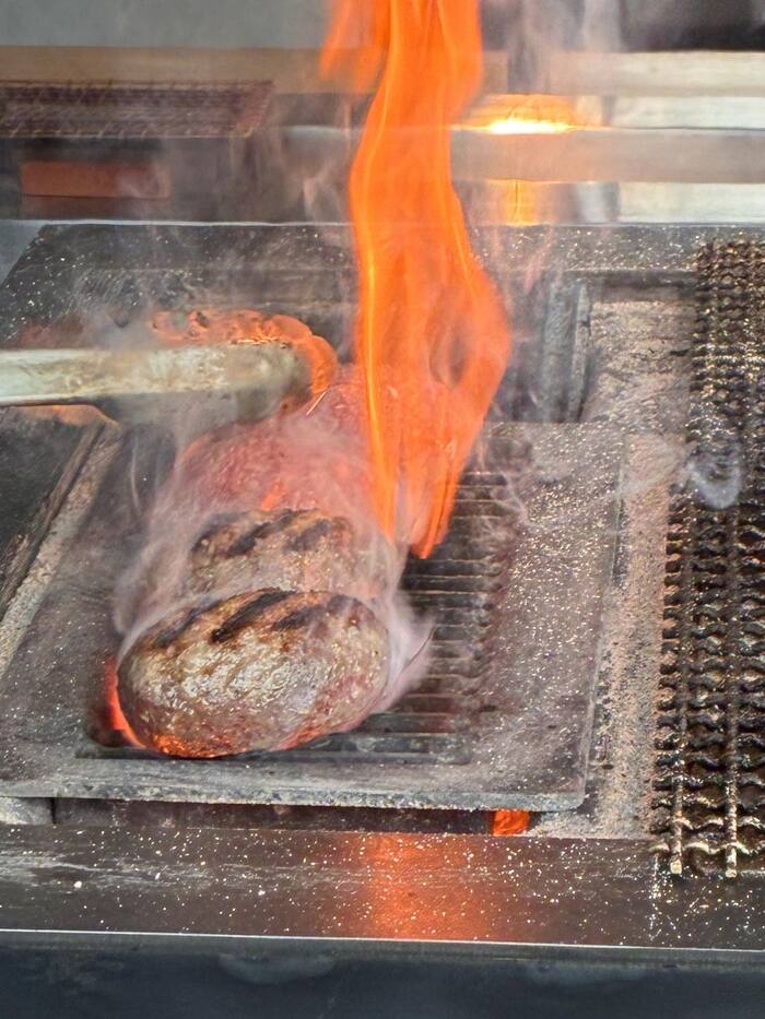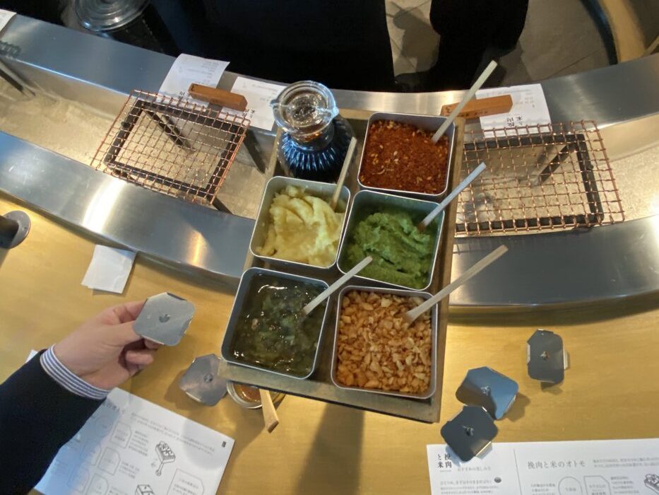コンセプトは「Just ground, Just grilled, Just cooked(挽きたて・焼きたて・炊きたて)」。中央に設置された炭火グリルを囲むカウンター席のみの構成で、シェフのリズミカルな調理の様子を目の前で楽しめるライブ感が魅力。注文は入店時にタッチパネルで行い、支払いは電子決済のみ。現金は使えないので注意が必要だ。