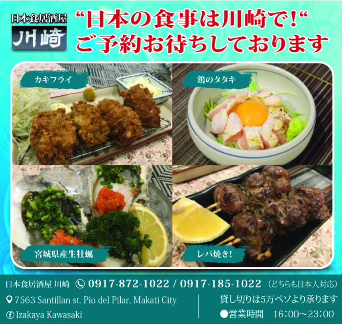 "日本の食事は川崎で!"