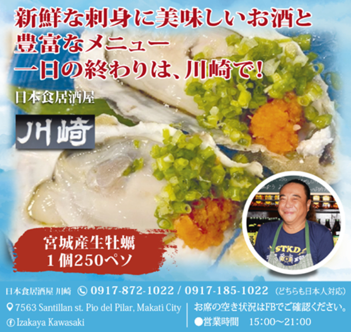アットホームな店内で、新鮮な刺身や美味しいお酒が楽しめます。仕事帰りや飲んだ後のシメとして、マカティに住む日本人に人気のお店です!