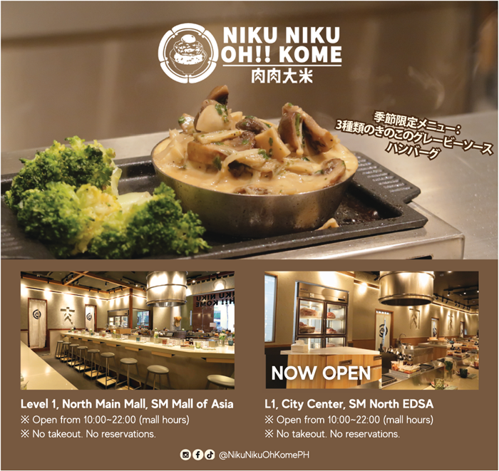 2025年12月1日から2か月間限定メニュー「Gravy Mushroom Hamburg Steak」が登場!SMモール・オブ・アジア(MOA)にあるハンバーグ専門店『NIKU NIKU OH!! KOME(肉肉大米)』。「挽きたて」「焼きたて」「炊きたて」をコンセプトにした和風ハンバーグ専門店。