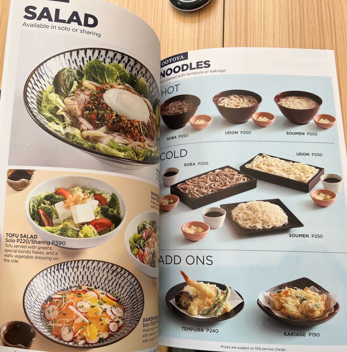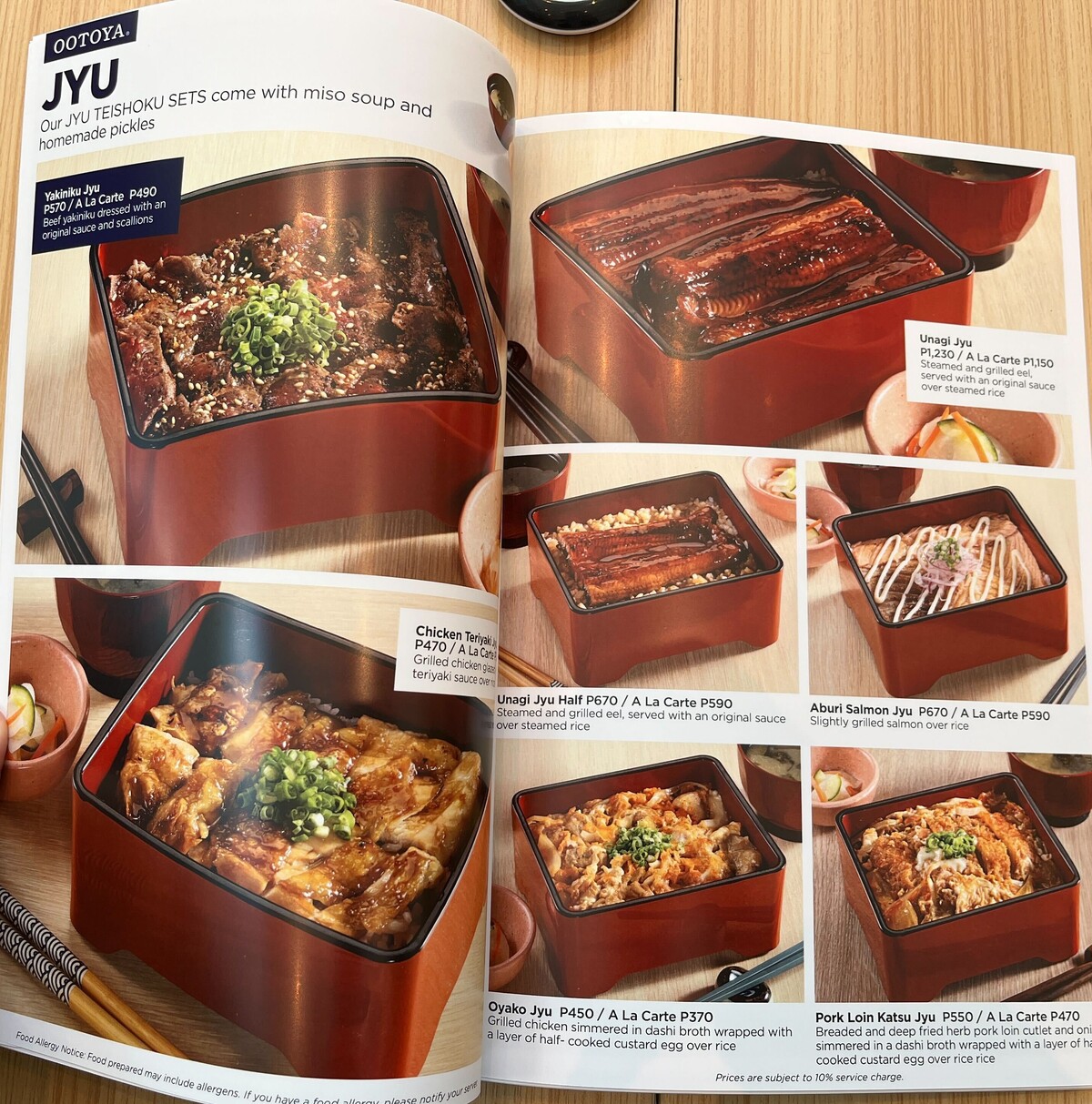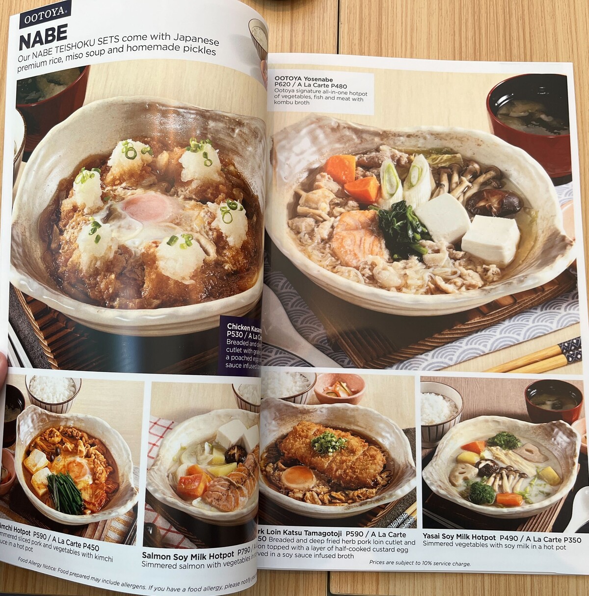 看板メニューのChicken Kurozu(Set Meal: P620/A La Carte: P480)は、揚げ鶏と野菜に黒酢あんを絡めた、大戸屋らしいバランスのよい一皿。脂ののった縞ほっけを香ばしく焼き上げたSima Hokke Sumibiyaki(Set Meal: P890/A La Carte: P750)や、豚肉・から揚げ・エビフライを一度に味わえるOotoya Teishoku(Set Meal: P690/A La Carte: P550)など、日本でもおなじみの定番が揃う。牛肉と野菜を甘辛く煮たBeef Sukiyaki Hotpot(Set Meal: P695/A La Carte: P555)も、ほっとする味わいだ。