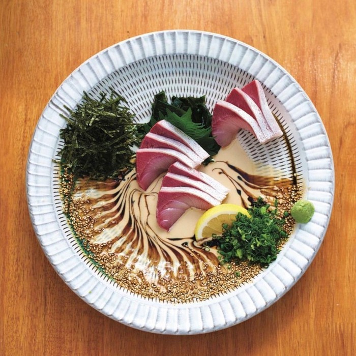 看板メニューは、博多名物・ごま鯖をアレンジしたブリの刺身漬け「博多のごまブリ」、そしてクリーミーなゴマペーストで味わう「照のごまブリ」。また、8時間じっくり煮込んでつくる“魂の煮込み”「牛スジ大根」や「ホルモン味噌煮込み」も食欲をそそる一品です。