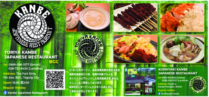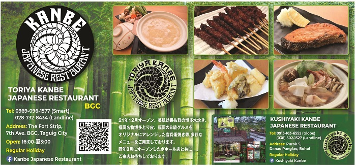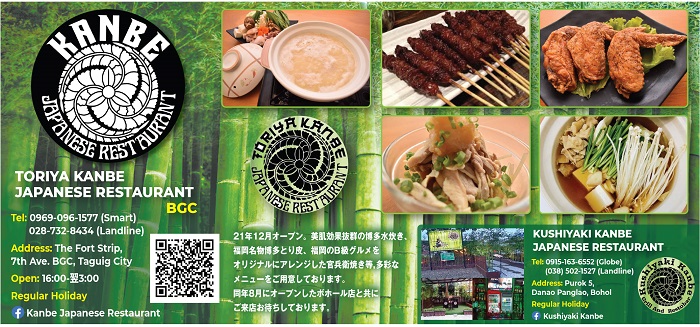BGCからマカティに移転しました!美肌効果抜群の博多水炊き、福岡名物とり皮、福岡のB級グルメをオリジナルにアレンジした官兵衛焼き等、多彩なメニューを揃える。ボホールでもKUSHIYAKI KANBEとして営業中。