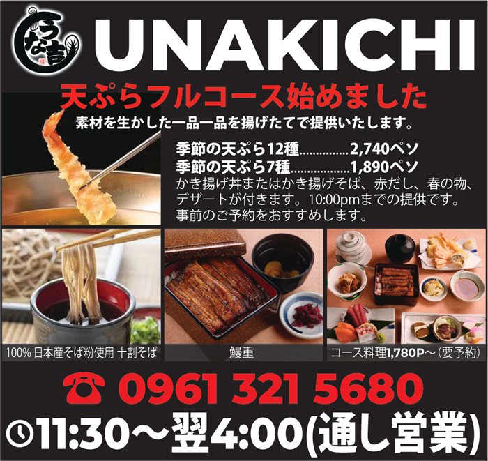 マカティシネマスクエアにある本格的な鰻料理店「うな吉」。うな重やうな丼、ひつまぶしなどの豊富な鰻メニューに加え、鍋料理をはじめとする和食メニューも人気。電話番号が変わりました→(02) 7007 7137 ご予約はこちらへ