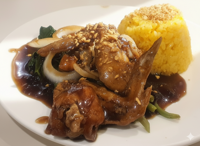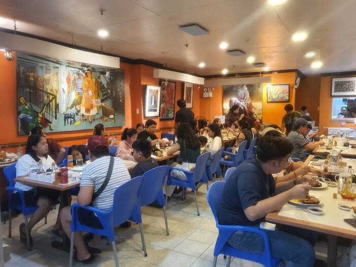 マカティ・セントラルスクエアの地下に店を構えるAida's Chickenは、素朴な佇まいながら長年支持されてきたフィリピン料理店。看板は、注文ごとに焼き上げるバコロド風のチキンイナサルで、香ばしい燻香とジューシーな仕上がりが魅力だ。「Inasal Paa/Pecho/Pakpak(P215)」は、鶏好きなら一度は味わいたい一品。「Chicken Wings Adobo(P199)」は酸味の効いた味付けで、ご飯が進む。「Pakbet(P280)」などの定番野菜料理も揃い、普段使いに向く価格帯。ランチタイムは混み合うことも多いが、気取らず楽しめる一軒だ。