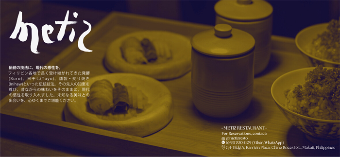 フィリピンとフランスのハーフであるシェフStephan Duhesme氏が手掛けるフィリピン創作料理レストラン。2023年度のAsia’s 50 Best Restaurantsにも選ばれた名店。居心地の良い雰囲気の店内で、友達との食事や飲み会から接待など、幅広く利用できる。新しいメニューも定期的に追加され、新鮮な地元の食材を使用して伝統的なフィリピンの味わいを探求している。また、フィリピン料理の小皿やカクテルを提供し、Metizよりややカジュアルな姉妹店のAUTOMATもオープン予定だ。要予約。