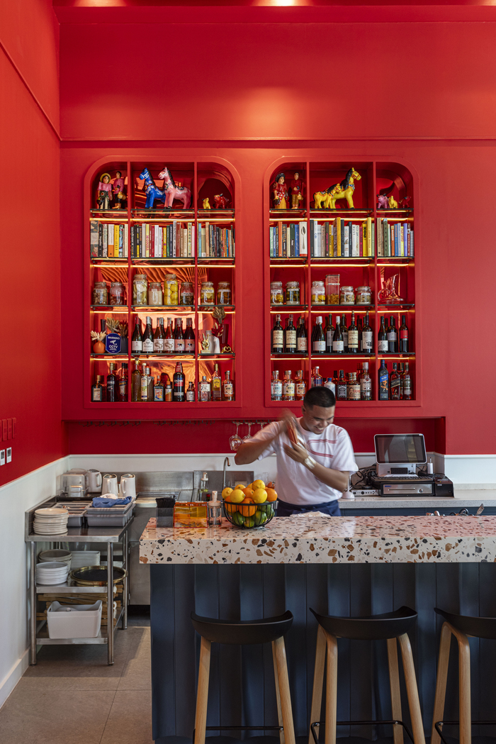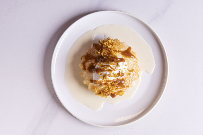 マカティのアヤラ・トライアングル・ガーデンズに店を構えるOffbeatは、赤い壁とブルーのアクセントが印象的な空間に、活気あるオープンキッチンを備えたフィリピン料理店。旧知の友人であるDon Baldosano氏とAngeo Omsti氏が、週末に集まって料理と酒を楽しんでいた延長線上で生まれた店で、地方色豊かなフィリピン料理を自由な発想で再構築している。おすすめは、ビサヤ地方の味をアレンジした「Fried Chicken Inasal(P390/1pc、P950/3pcs)」、ココナッツの風味が広がる「Mamon Tres Leches(P430)」、エビのサラダと燻製ケソ・デ・ボーラを合わせた「Bibingka(P630)」。親しみやすさの中に遊び心を感じる一軒だ。