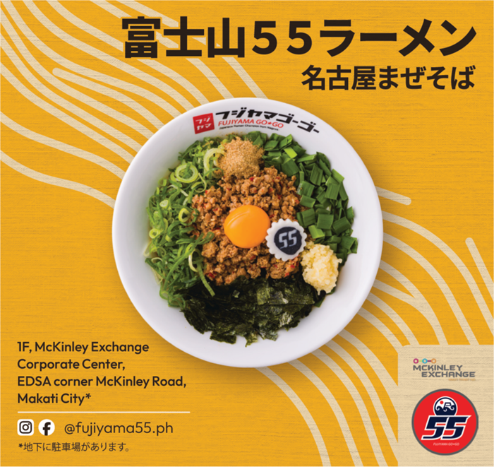 名古屋の実力派ラーメン店「フジヤマ 55」が、2025年5月、マッキンリー・エクスチェンジ・コーポレートセンター(マカティ)にオープン。濃厚な旨味が詰まったスープと極太麺が特徴で、らーめん、つけ麺のほか、まぜそばも!