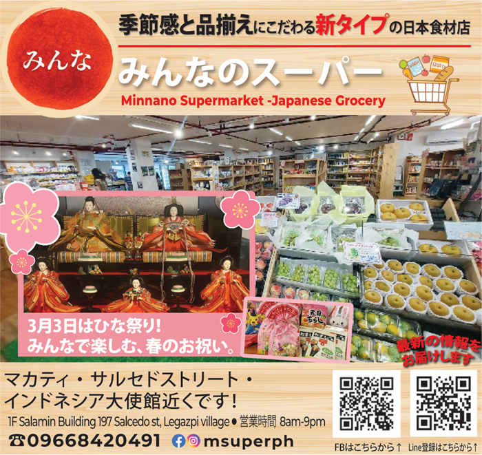 イセヤはマカティ・リトル東京の日本食品店。バラエティに富んだ品揃えで、とてもフレンドリーなお店だ。「日本の伝統と味覚をフィリピンの皆さんにご紹介し、家族連れで来店いただきたい」と考える同店は、お客様が求める商品・品物を、リーズナブルな価格で提供し、「日本に手が届く」店舗を目指す。