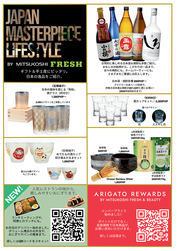 パティスリー・べべルージュやイコマイなど、フィリピンに拠点を置く日系のお店の商品も取り扱う。また、マグロの解体ショーなどのイベントも開催される。