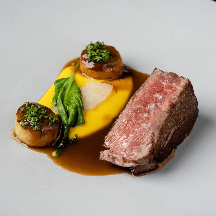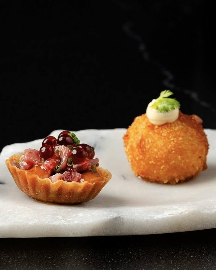 ンタブリア地方の味を現代的に再構成した料理を提供。シーフードやタパス、肉料理を軸に、芸術性と郷愁が同居する一皿を提供する。魚介を目の前で調理するライブ感も魅力。おすすめは全5品の「5-Course Menu(P3,225)」で、ワインペアリング(追加P1,300++)も用意。メニューはChele氏が監修し、厨房はミシュラン星付きレストランでの経験を持つスペイン人シェフ、Álvaro Romero-Abreu Raya氏が率いる。