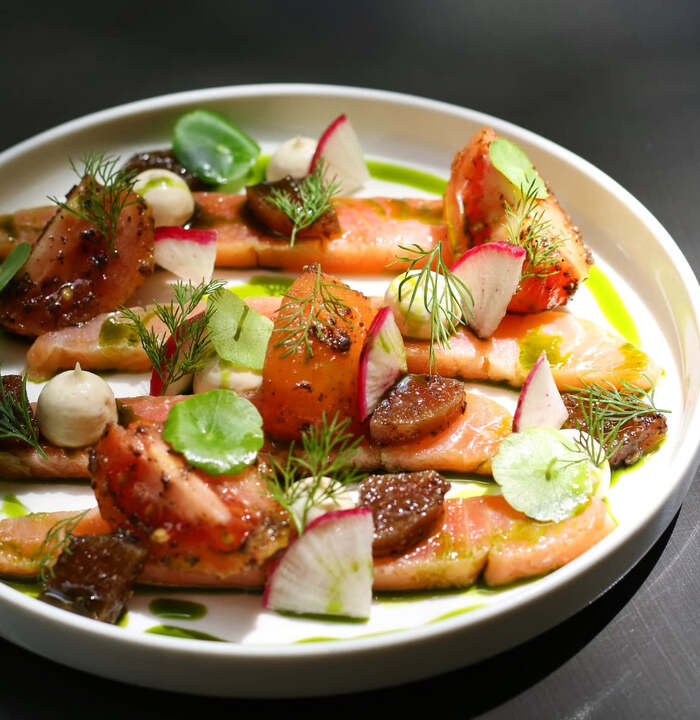 セブに店舗を構える「The Pig & Palm」は、ミシュランスターシェフとして知られる英国人シェフ、Jason Atherton氏が手がけるフィリピン初のレストラン。妻であるIrha氏の故郷・セブを拠点に、モダンヨーロピアン料理を提供。料理はヘッドシェフのJamie Doe氏とともに開発され、地元食材を積極的に取り入れながら、セブ名産の豚肉を主役に据えた一皿が多いのも特徴。おすすめは、甘みのあるリンゴキャラメルと合わせた「Confit Pork Belly(P1,150)」や、爽やかな酸味が印象的な「Gin Cured Salmon(P780)」。併設のバーでは、フィリピンのフルーツを使ったカクテルも楽しめ、日曜にはブランチも用意されている。