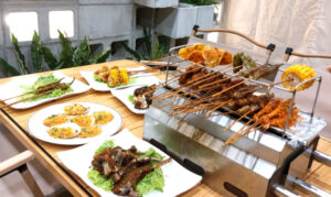 アウトドアをイメージした店内がおしゃれなバーベキューレストラン。好きな具材を注文し、卓上のグリルで焼いていただく。家族や友人とわいわい楽しむのにぴったりだ。1階に系列店の火鍋レストランとカフェがある。