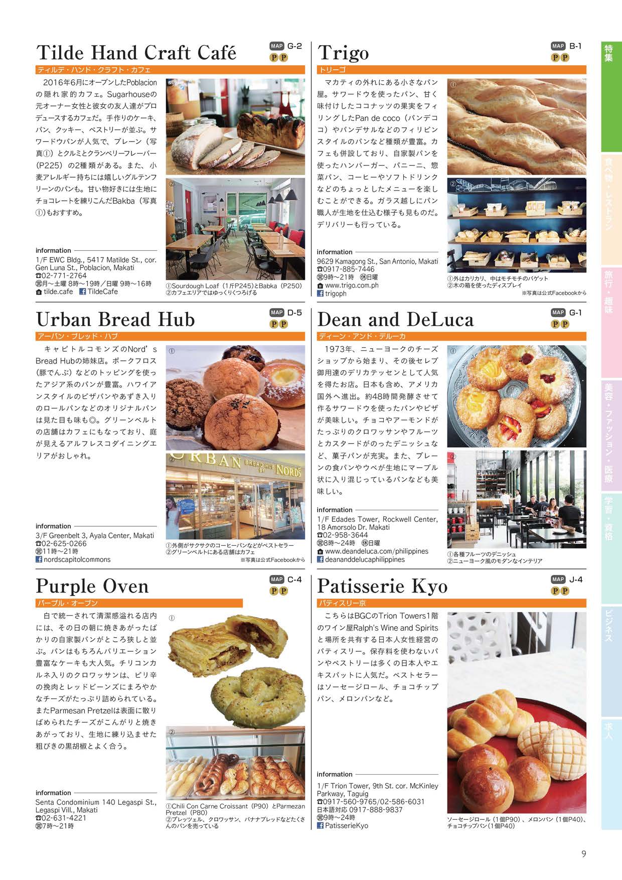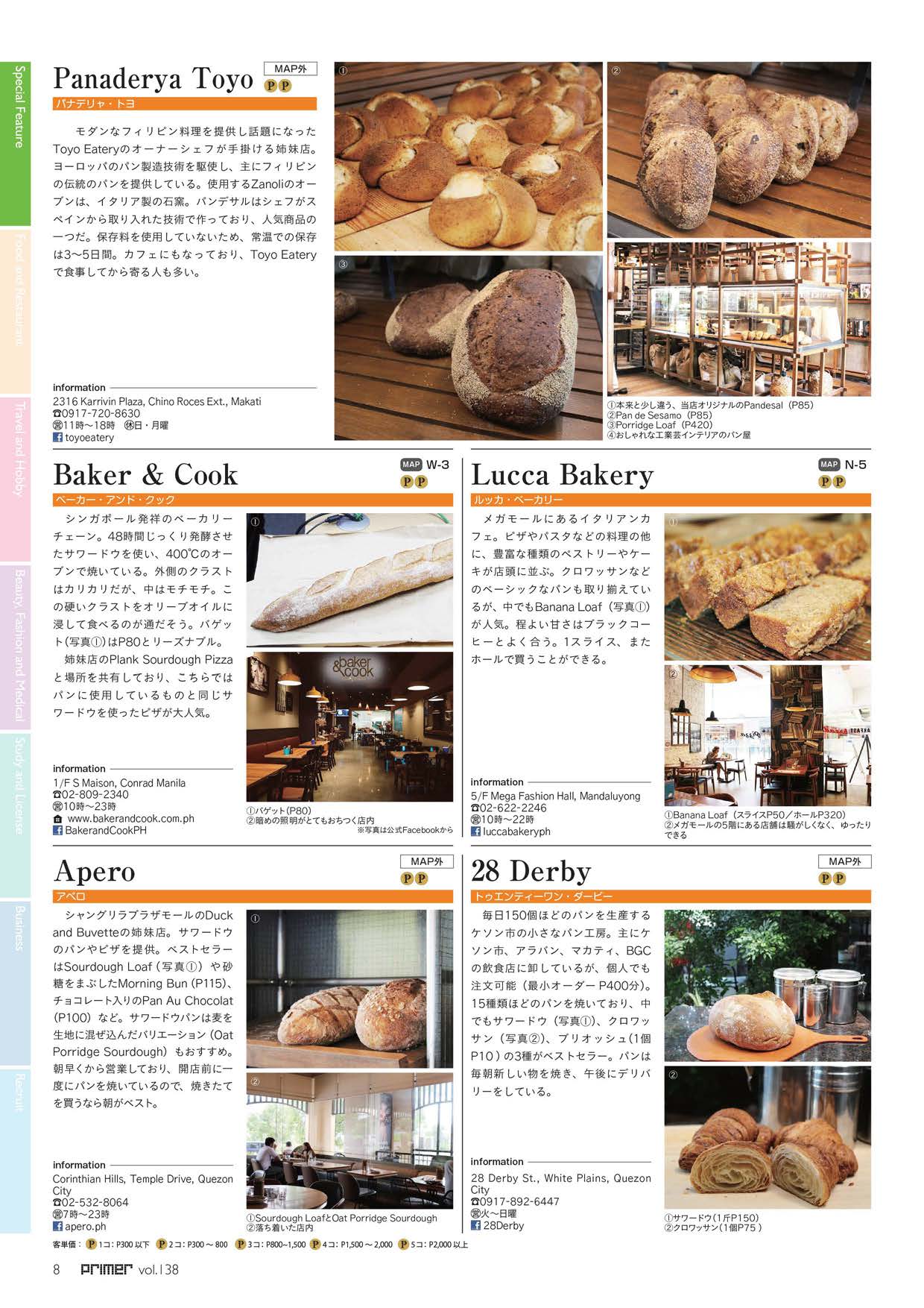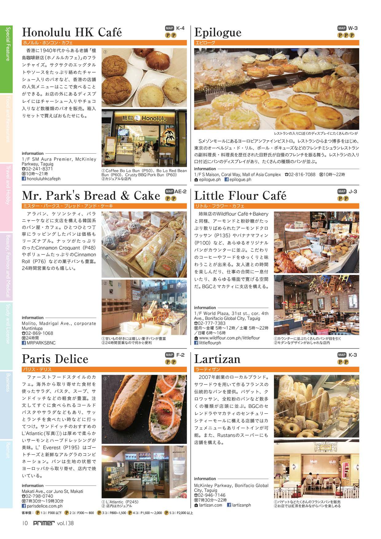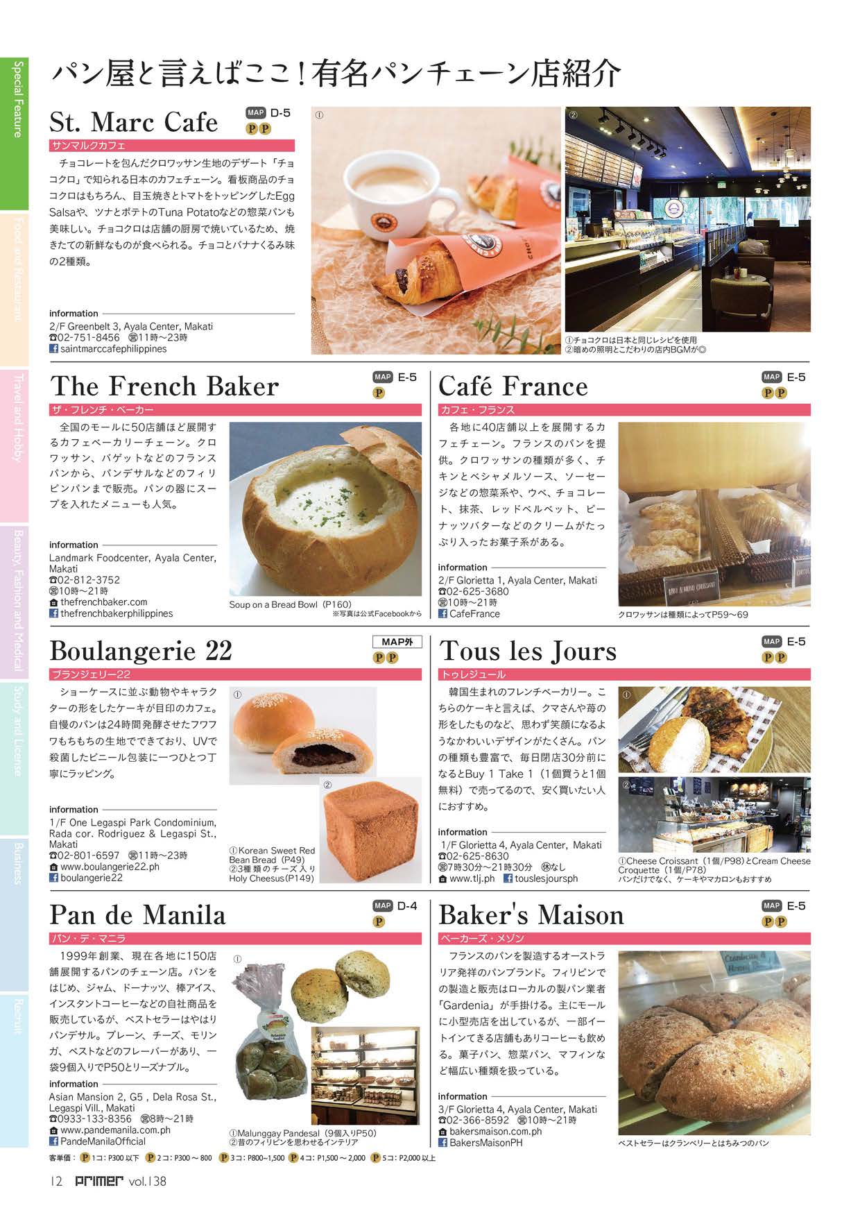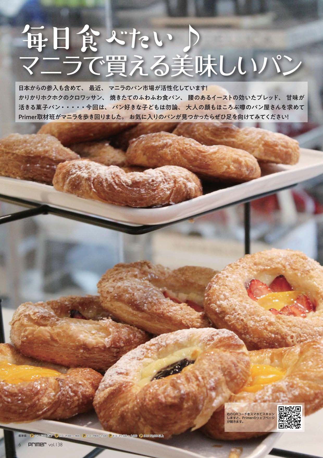 - 日本からの参入も含めて、最近、マニラの市場が活性化しています! かりかりホクホクのクロワッサン、焼きたてのふわふわ食パン、腰のあるイーストの効いたブレッド、甘味が活きる菓子パン・・・・ 今回は、パン好きな子供は勿論、大人の顔もほころぶ噂のパン屋さんを求めてPrimer取材班がマニラを歩き回りました。お気に入りのパンが見つかったらぜひ足を向けてみてください!