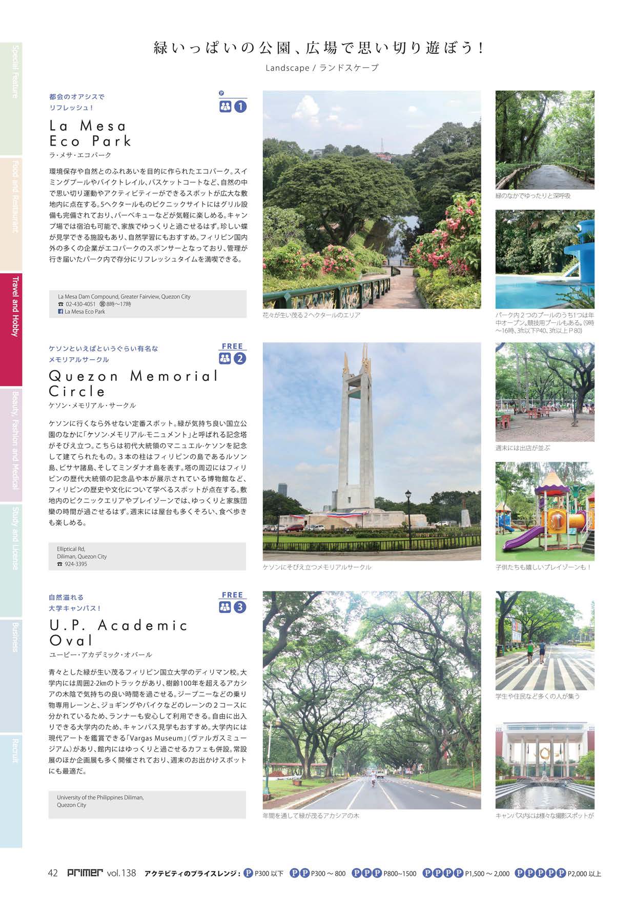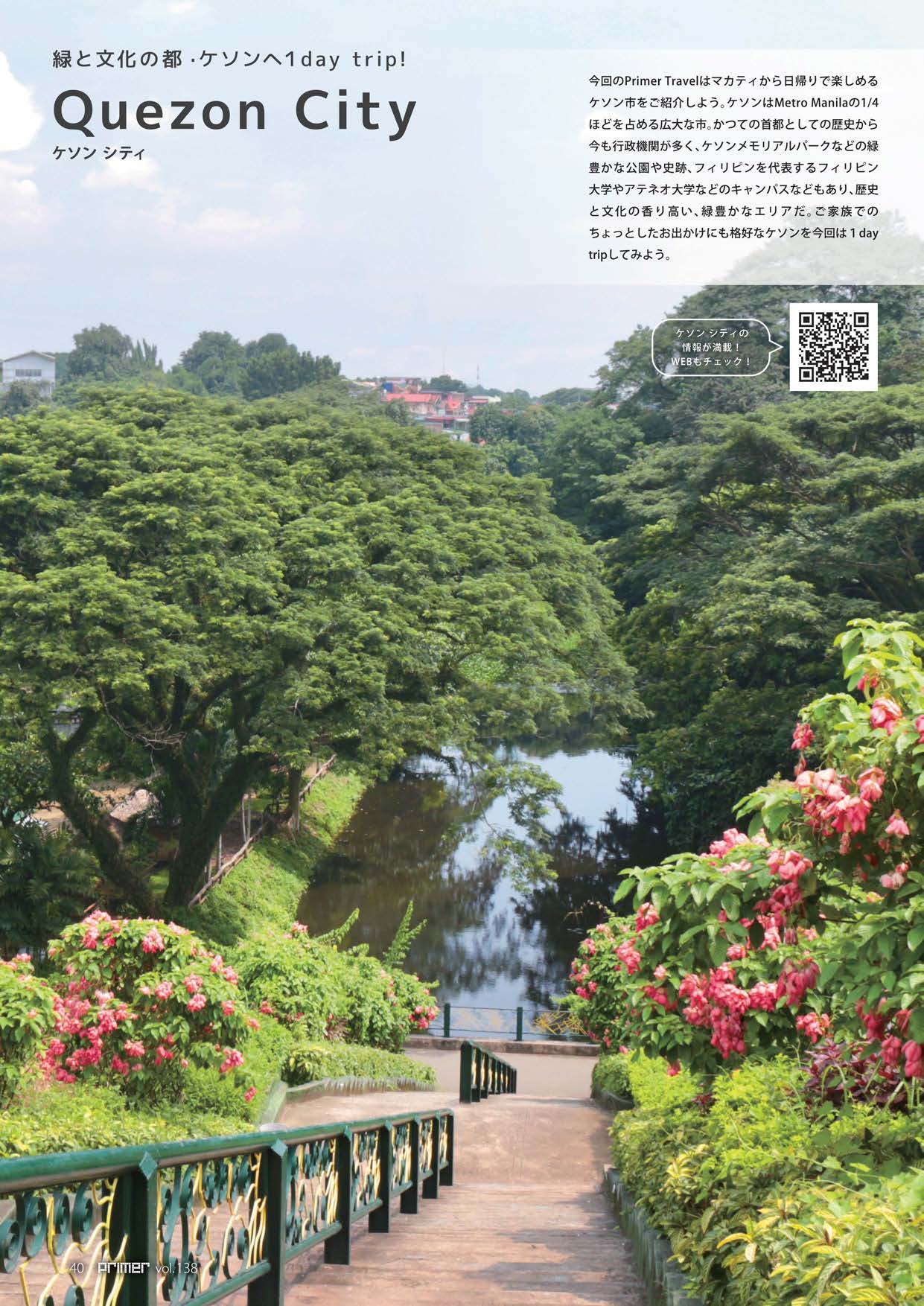 - 今回のPrimer Travelはマカティから日帰りで楽しめるケソン市をご紹介しよう。ケソンはMetro Manilaの1/4ほどを占める広大な市。かつての首都としての歴史から今も行政機関が多く、ケソンメモリアルパークなどの緑豊かな公園や史跡、フィリピンを代表するフィリピン大学やアテネオ大学などのキャンパスなどもあり、歴史と文化の香り高い、緑豊かなエリアだ。ご家族でのちょっとしたお出かけにも格好なケソンを今回は1day tripしてみよう。